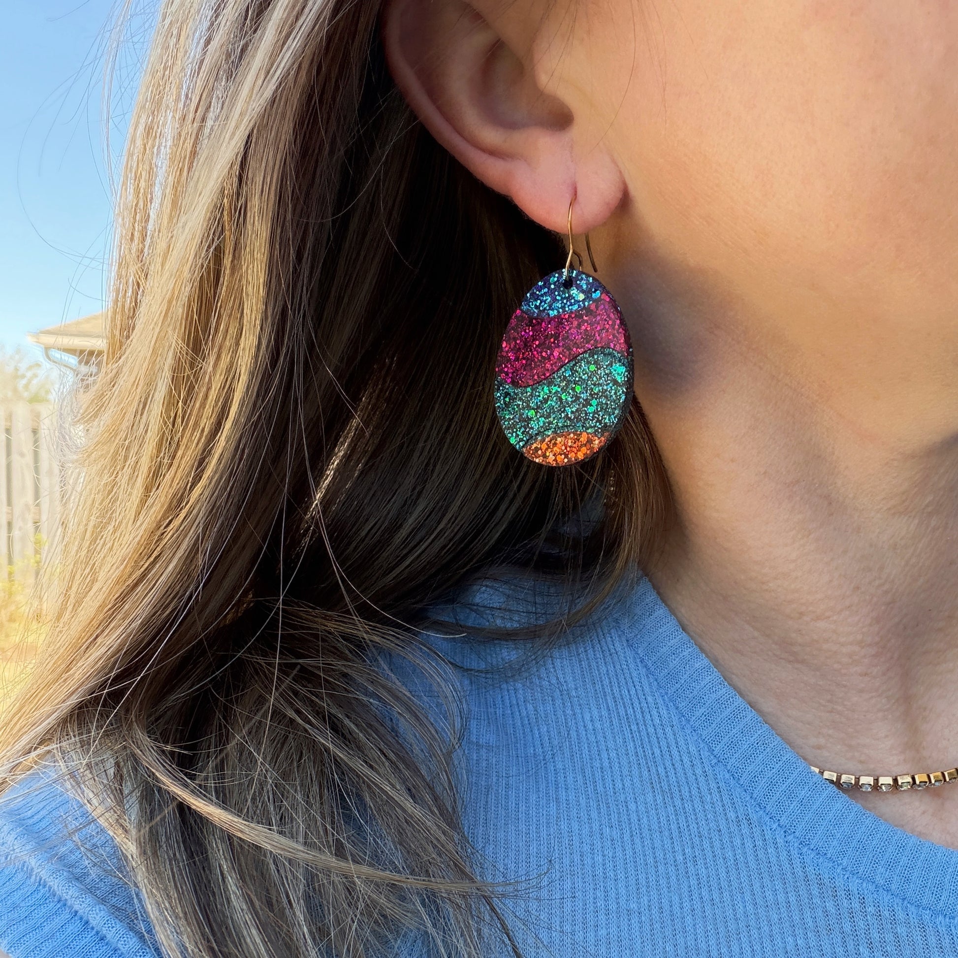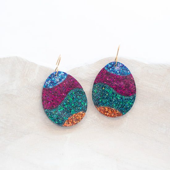 These Easter egg shaped drops are handcrafted with layered resin and custom glitter blends.